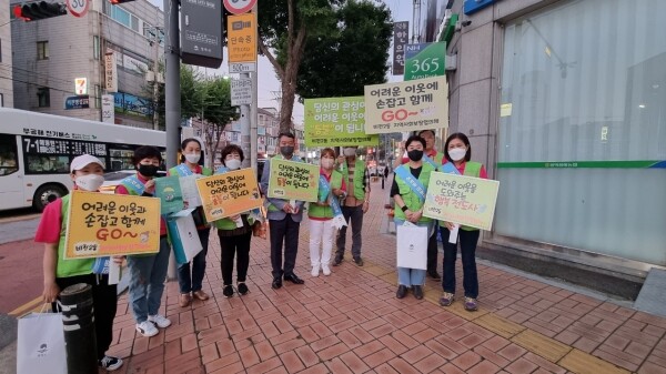 이번 캠페인은 지역사회보장협의체 위원과 행정복지센터 직원들이 함께 참여했으며 관내 유동인구 밀집지역인 덕동사거리에서 피켓 홍보와 이동하는 지역 주민들에게 복지사각지대 발굴 안내문을 배부했다.