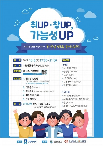 ‘2022년 청년UP클라우드 취·창업 멘토링 콘서트’ 포스터에 있는 ‘QR코드’를 스캔해 참여 신청을 할 수 있다.