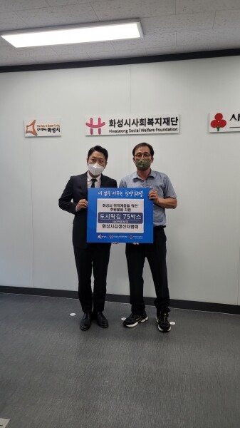 28일 화성시사회복지재단에서 열린 전달식에는 진석범 화성시사회복지재단 대표이사와 장경일 화성시 김생산자협회장이 참석했다.