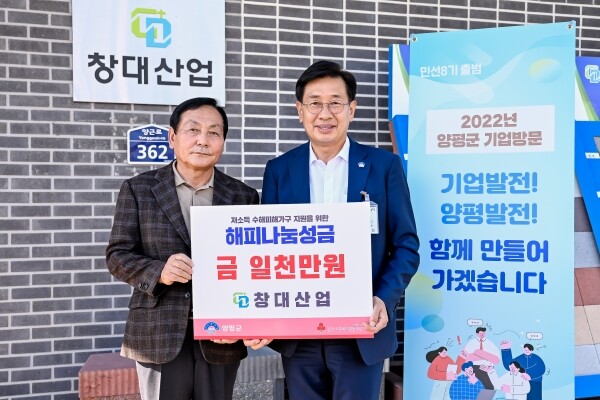 전진선 군수는 “관내 어려운 이웃을 위해 성금을 기탁해 주신 창대산업 대표님께 감사드린다”며 “공동체가 함께 하는 돌봄과 배려의 복지 실현을 위해 최선을 다하겠으며 창대산업을 비롯한 양평 관내 기업들의 발전을 기원한다”고 전했다.