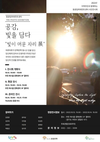 사진전시회는 동광임파워먼트센터의 문화예술 사업의 일환으로 2012년부터 이어지고 있으며 이번 전시는 12명의 정신장애인 작가가 ‘빛’이라는 주제로 촬영한 작품들을 선보일 예정이다.