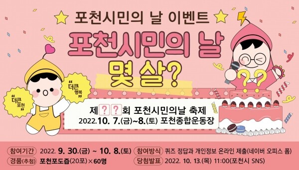 시 관계자는 “이번 이벤트로 포천시민의 날 축제가 더욱 풍성해지고 축제로 인해 포천시가화합과 소통의 시간이 되길 희망한다”고 전했다.