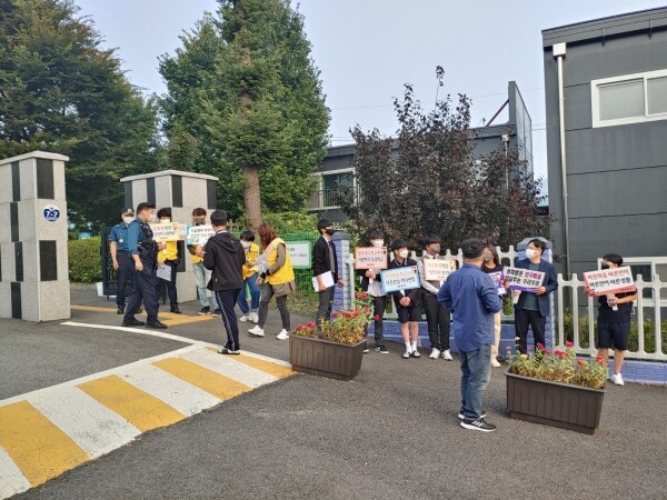 이날 참가자들은 학생들이 등교하는 정문에서 학교폭력 예방 및 건강한 학교 환경 조성에 대한 메시지를 전달했다.