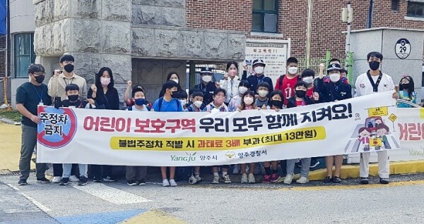 이날 양주시청 차량관리과 및 양주경찰서 직원, 녹색어머니회원들이 하교시간에 맞춰 초등학생과 학부모를 대상으로 어린이보호구역 주정차 금지 및 주정차 사전알림서비스 등을 홍보하며 운전자들의 안전 의식을 제고시켰다.