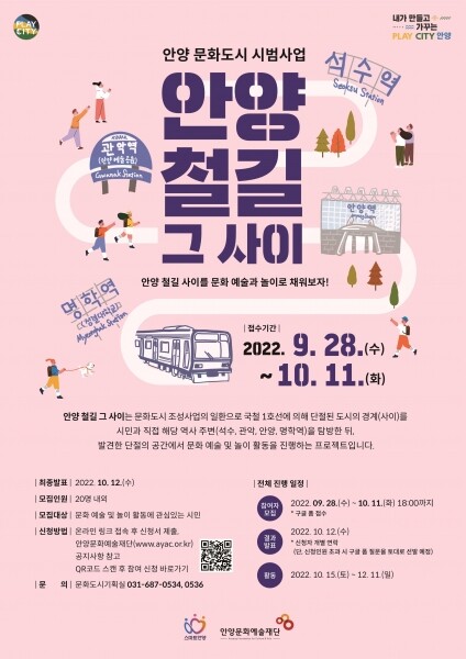신청은 안양문화예술재단 홈페이지내 공지사항 온라인 양식을 통해 접수 가능하며 참가비는 무료다.