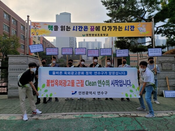 이번 캠페인은 학교 주변 어린이 보행환경을 저해하는 불법 현수막 및 전단지 등 불법광고물을 근절하고 안전한 통학로를 확보하기 위해 연수구시설안전관리공단, 인천옥외광고협회와 함께 민·관 합동으로 실시했다.