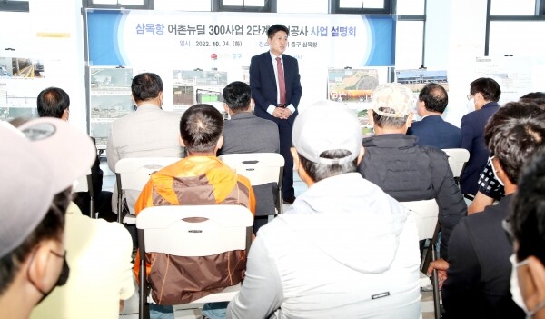 이번 주민설명회는 삼목항 어촌뉴딜 300사업의 총3단계 사업 중 2단계에 해당하는 사업을 설명하는 자리로 총사업비 124억원 중 74억원이 투입되는 가장 큰 규모의 사업을 설명하며 주민들의 사업이해도를 향상시키는데 초점을 뒀다.