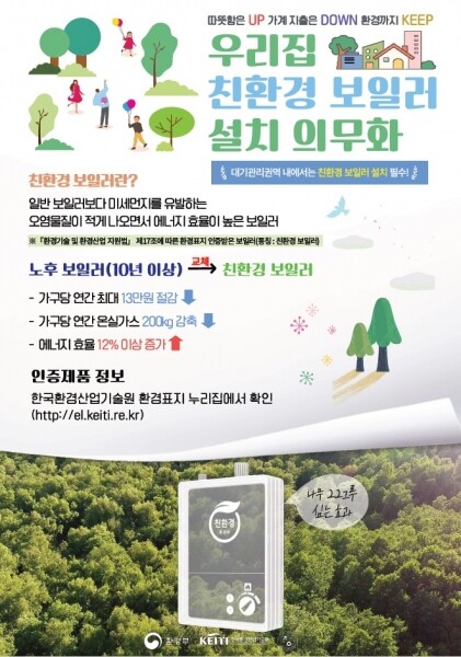 현재 김포시 등 수도권 대기관리권역 내 보일러를 교체·신규 설치하는 주택, 상가 등에서는 ‘대기관리권역의 대기환경개선에 관한 특별법’에 따라 가정용 1종보일러를 설치해야 한다.