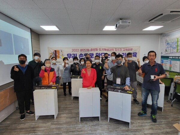 교육은 집수리 이론 학습과 실습과정을 포함해 총 4회 과정으로 구성됐으며 두꺼비집 수리 및 LED등 교체, 파이프 전등 만들기, 목공의자 만들기, 화장실 타일 설치 및 수건걸이 설치, 페인트 도색 등 실생활에 필요한 다양한 집수리 교육프로그램을 제공했다.