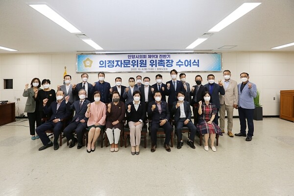 최병일 의장은 이날 위촉식에서 “안양시의회는 열린 의정의 마음가짐으로 시민과 소통하는 의회, 시민 행복을 우선으로 하는 의회가 되기 위해 최선을 다할 것”이라며 “선도적인 의회가 되기 위해 전문역량을 갖춘 위원들의 적극적인 자문이 꼭 필요하다”고 말했다.