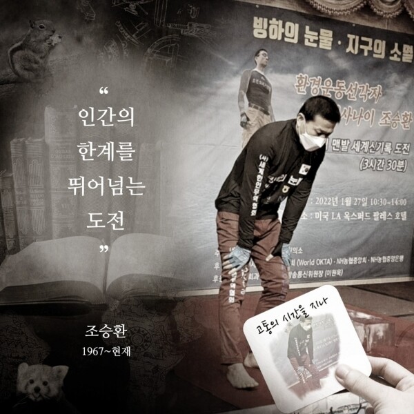 조승환 씨는 초인적인 인내심으로 세계 최초 영하 30도 한라산 맨발 등반 3회, 얼음 위 오래 서 있기 등 자신이 갖고 있는 세계기록을 꾸준히 경신해 나가며 기후 위기의 심각성을 전 세계에 알리고 기부 등의 선행을 꾸준히 이어가는 인물이다.
