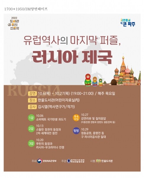 지중해 전쟁사의 저자인 김시열 역사연구가가 강사로 나서 소비에트 국가탄생 과도기부터, 푸틴의 등장과 러-우전쟁까지 3차에 걸쳐 강의한다.