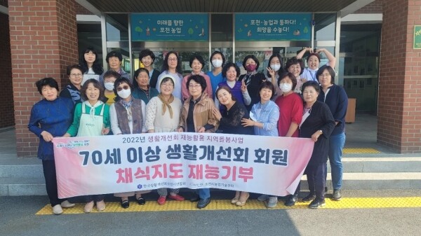 한편 채식지도사 1급 자격증을 취득한 생활개선회 회원 20명은 지난 6월부터 9월까지 6회 로 관내 노인복지센터 소속 어르신들에게 채식요리 봉사활동을 진행해 재능기부에 앞장서고 있다.