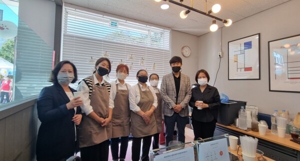 이번 무료 나눔 이벤트는 복지관 옥상 바자회와 연계돼 진행됐으며 복지관 이용인과 주민들에게 바리스타 반의 어머니들이 직접 현장에서 내린 신선한 핸드드립 커피를 무료로 나눠줬다.