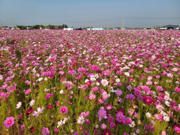 ▲ 오성강변 경관작물 단지 코스모스 만개