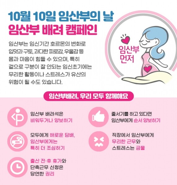 임산부의 날은 임신과 출산을 장려하고 임산부를 배려하는 사회 분위기를 만들기 위해 2005년 제정됐다.