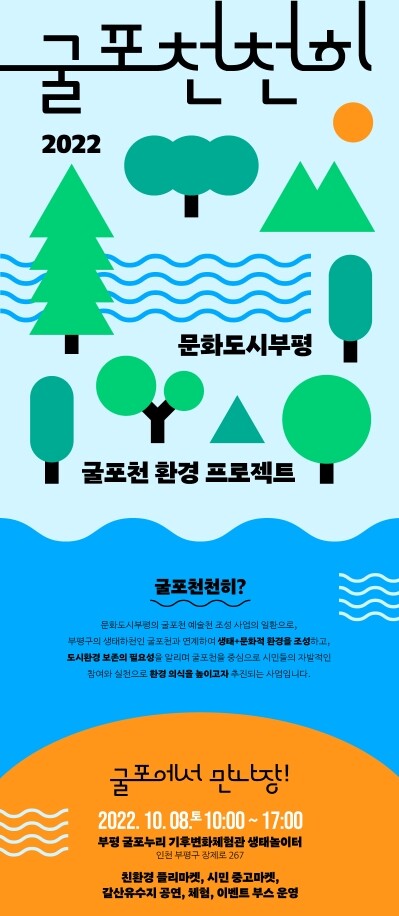 부평구 문화도시센터 관계자는 “굴포천 환경 프로젝트인 ‘굴포 천천히’ 사업을 통해 굴포천과 환경을 연결하고 도시환경에 대해 시민이 표면적으로 체감할 수 있는 시간이 되길 바란다”고 말했다.