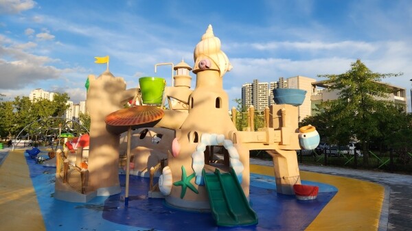 장기동 1539번지 한강중앙공원에 총사업비 17억원을 투입해 모래성을 테마로 해 물놀이 조합놀이시설 1개소, 조형분수 1개소, 소규모 물놀이시설 8개소, 바닥분수 1개소, 샤워기 2개소 등을 설치한 이번 사업은 평소에는 어린이 놀이터로 활용하다가 여름철에는 물놀이장으로 활용되어 시원한 물줄기와 물놀이공간을 제공하게 되며 이를 계기로 김포시민의 친수공간 이용기회도 더욱 늘어날 것으로 기대된다 이번 물놀이터 조성으로 한강신도시 어린이들은 집과 가까운 곳에서 편하게 물놀이를 즐길 수 있게 됐으며 워터버켓, 워터밀, 슈팅헌터 등 워터파크 못지 않은 시설과 편의시설로 다채로운 물놀이가 가능해질 전망이다.