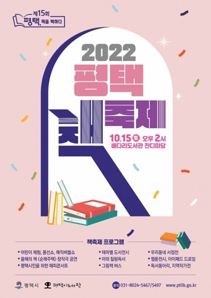 올해의 책 ‘순례주택’을 각색한 창작극 공연, 풍선쇼, 매직 버블쇼, 전래놀이, 평택시민을 위한 해피콘서트, 북북빵빵 그림책 버스, QR코드 구독 이벤트, 아이패드 드로잉, ‘검정토끼’ 가방, 커피 찌꺼기를 활용한 화분 만들기 등 올해의 책을 주제로 한 공연과 체험 등 전 연령층이 즐길 수 있는 책 문화 축제를 경험할 수 있다.