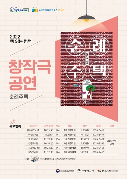 이번 공연은 2022년 도서관·박물관·미술관 ‘1관 1단’ 공모사업에 배다리도서관이 선정되면서 구성한 1관 1단 청년 연극동아리와 극단 아티센터가 함께 진행한다.