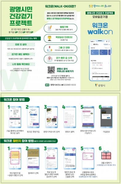 광명시는 광명시민의 일상 속 걷기 생활화를 위해 2020년부터 광명시민을 대상으로 모바일 걷기 플랫폼 워크온 커뮤니티를 운영 중이다.