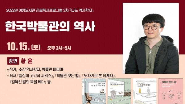 이번 강연은 올해 아양도서관에서 진행 중인 진로독서프로그램의 3차 ‘나는 역사학자’의 일부로 문학, 환경에 이어 이번 차시에는 역사학자가 하는 일과 한국박물관의 역사에 대해 들어보는 시간을 갖고자 마련됐다.