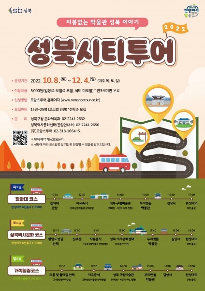 보다 자세한 내용은 성북구청 문화체육과, 성북역사문화센터, ㈜로망스투어로 문의하면 된다.