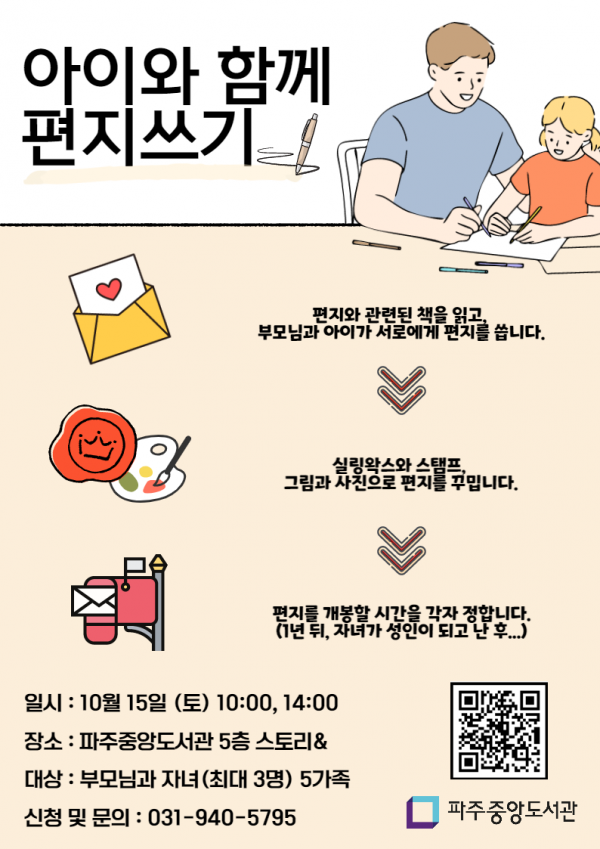 권예자 중앙도서관장은 “디지털에 익숙한 아이들이 직접 손편지를 작성해보는 시간을 통해 글쓰기의 즐거움을 알고 가족 간의 소통을 강화할 수 있는 시간이 될 것”이라고 말했다.