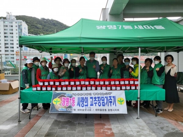 박연진 광명7동 새마을부녀회 회장은 “매년 고추장 담그기 행사로 이웃사랑을 실천하면서 회원 간에 친목도 돈독해지고 있다”며 “앞으로도 어려운 이웃을 위해 다양한 나눔활동을 펼쳐 나가겠다”고 밝혔다.
