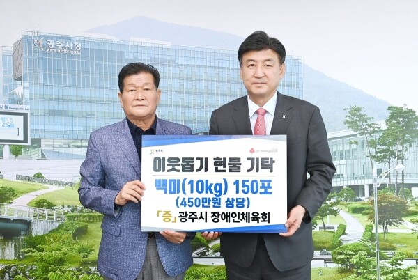 또한, 광주시장애인체육회 관계자는 “지난 9월 남윤구 상임부회장이 임명되며 축하 화환을 대신 백미를 받아 관내 어려운 이웃들을 위해 기탁하게 됐다”고 전했다.