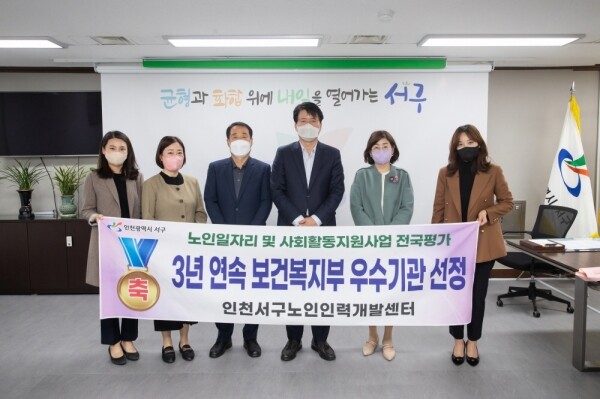 표창 전수식에서 강범석 서구청장은 “노인일자리 사업으로 3년 연속 수상한 수행기관과 사업에 적극적으로 참여한 어르신들에게 감사드린다”며 “앞으로도 다양한 일자리 사업을 추진해 어르신들이 건강하고 행복한 노후를 보내도록 최선을 다하겠다”고 말했다.
