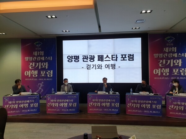 코로나 펜데믹 이후 변화된 관광패턴에 대응해야 할 지자체의 역할, 도보여행의 중요성, 그리고 양평 물소리길의 발전방안 모색을 위해 마련된 이날 포럼은 물소리길을 관리하는 양평헬스투어 협동조합을 비롯해 한국걷는길연합, 내포문화숲길, 영주 소백산자락길, 원주 정토걷기, 강릉바우길, 여주 여강길, 웰니스관광협동조합 등 전국걷기단체와 관광업계 관계자 등 100여명이 참석했다.