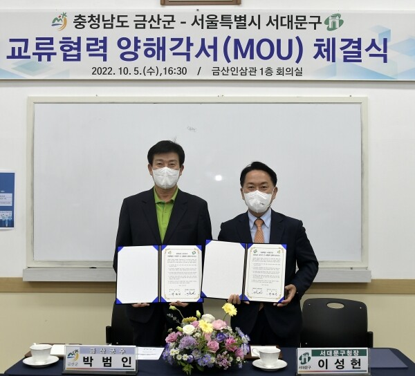 박범인 금산군수는 “이번 MOU 체결을 기점으로 상호 발전적인 협력 관계를 공고히 해 정식 자매결연으로까지 이어지길 기대한다”고 말했다.