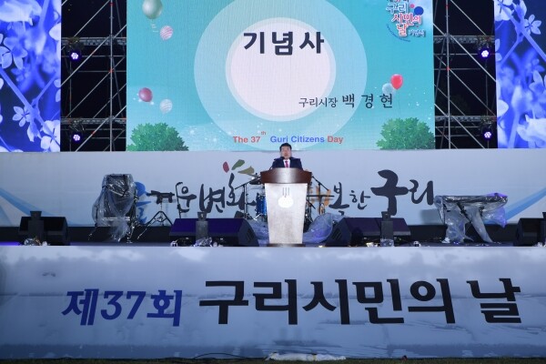 구리문화원 풍물반 동아리 ‘늘락’과 한국국악협회 구리지부, 구리 시립합창단의 식전 공연을 시작으로 진행된 기념식은 국민의례, 시상식, 안영기 문화원장의 시민헌장 낭독, 백경현 구리시장 기념사 및 권봉수 구리시의회 의장 축사, 윤호중 국회의원과 김동연 경기도지사 및 구리시 국내외 교류도시 시장군수의 축하 영상메시지 상영, 장수용 노인회장의 만세삼창 순으로 진행됐다.