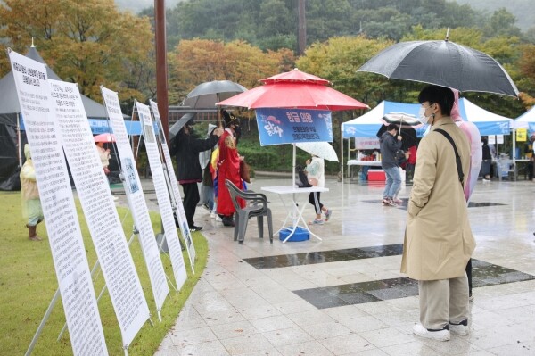 코로나19로 인해 3년 만에 대면행사로 개최된 이날 한글축제에는 비바람이 부는 궂은 날씨에도 한글의 소중함과 아름다움을 기리기 위해 400여명의 시민들이 축제 현장을 찾아 자리를 빛냈다.