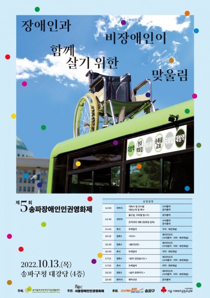 올해로 5회째를 맞이한 ‘송파장애인인권영화제’는 장애인과 비장애인이 함께 하는 문화예술제로 코로나 19 이후 3년 만에 대면으로 진행된다.