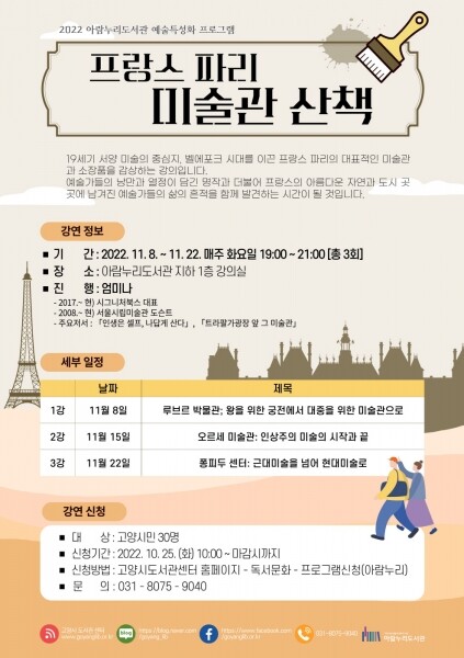 이번 강연은 예술가들의 낭만과 열정이 담긴 명작과 더불어 프랑스의 아름다운 자연과 도시 곳곳에 남겨진 예술가들의 삶의 흔적을 함께 발견하는 소중한 시간이 될 예정이다.