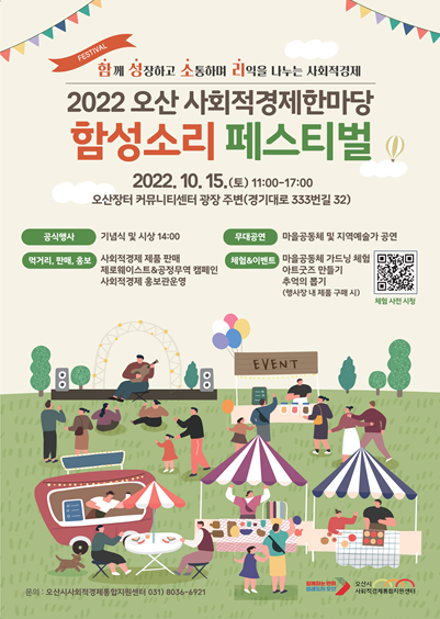 행사장에서는 사회적 경제 기업, 창업팀, 마을공동체팀, 특별부스, 창작예술촌, 오산신협 등 총 26개 부스를 운영하는데 먹거리존 판매·홍보존 체험존 등 다양한 사회적경제 제품과 서비스도 경험할 수 있다.
