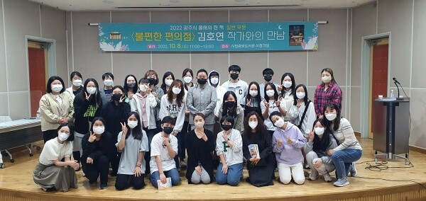 시 관계자는 “광주시민이 직접 투표해 선정된 올해의 한 책인 만큼 이번 작가와의 만남이 더욱 뜻깊은 시간이 됐다”며 “앞으로도 올해의 한 책을 매개로 작가와 독자, 도서관과 시민이 소통하고 다양한 독서문화 프로그램을 누릴 수 있는 기회를 마련하겠다”고 밝혔다.