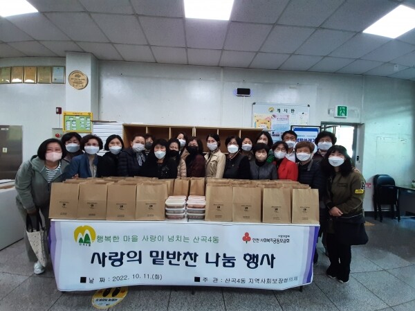 박영숙 산곡4동 지역사회보장협의체 위원장은 “식사를 챙기기 어려운 가정에 맛있는 음식으로 도움을 줄 수 있어 기쁘다”며 “앞으로도 협의체에서는 밑반찬 나눔을 통해 이웃과 소통하는 기회를 자주 갖도록 노력하겠다”고 말했다.