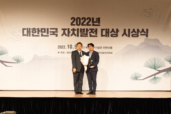 한편 한국자치발전연구원이 주최하는 대한민국 자치발전 대상은 지역의 특색있는 자원을 활용해 지역 발전에 기여한 정책과 자치분권의 모범이 되는 정책 등을 펼쳐온 국회의원 및 지방의원·지방자치단체장·교육감·공무원 등에게 수여한다.