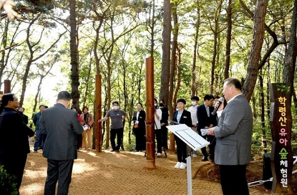 시는 아동동 학령산 자락에 사업비 3억원을 투입해 6,200㎡ 규모의 유아숲체험원을 조성했으며 모든 시설물은 목재로 조성됐다.