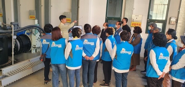 이날 견학은 그동안 잦은 침수피해를 겪었던 생연2동 지역 통장 20명이 참석했으며 빗물펌프장 운영상황에 대한 장형일 하천팀장의 설명을 듣고 빗물펌프장 시험 가동을 견학하는 순으로 진행됐다.