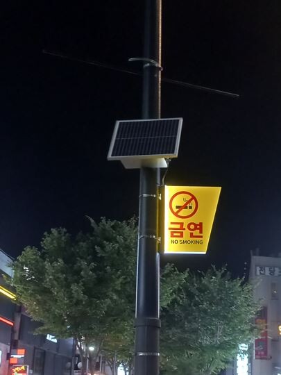 이번에 부착한 금연 표지판은 시인성을 강화하기 위해 야간에는 점등이 되도록 했으며 태양열을 활용해 환경과 에너지 절약에도 도움이 되도록 특수 제작했다.