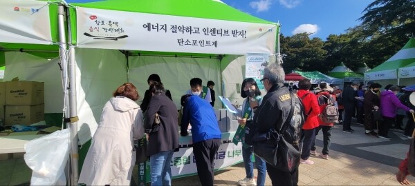 이날 자유공원 광장에 마련된 홍보 부스에서 가을을 맞아 나들이 온 주민들을 대상으로 탄소포인트 제도를 안내하고 현장에서 바로 신청을 받기도 했는데, 상당히 긴 접수 대기선이 생길 정도로 많은 주민들이 관심을 보였다.