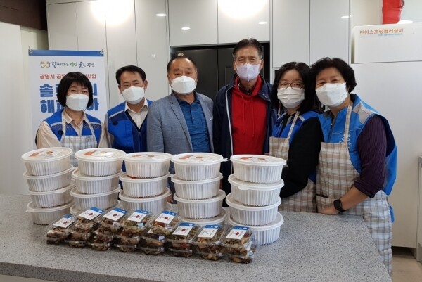 ‘솔로들의 해피모아’는 광명시 공유단체 지정사업으로 철산종합사회복지관에 위치한 공유부엌 ‘이음’에서 8개 단체의 자원봉사 신청을 받아 청장년 취약계층 20가구에 반찬을 지원하는 사업이다.
