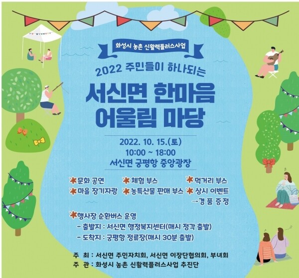 이번 행사는 서신면 주민자치회, 서신면 이장단 협의회와 부녀회가 주최하고 화성시 농촌신활력플러스사업단이 주관하는 지역축제다.