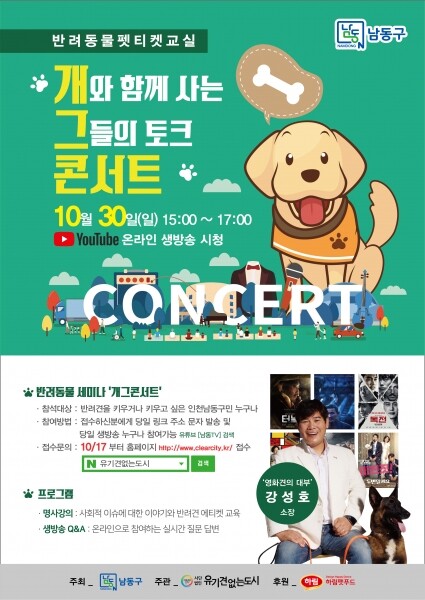 참여 접수는 오는 30일 정오까지 ‘유기견 없는 도시’ 홈페이지에서 진행되며 사전접수를 하지 못해도 당일 남동구청 홈페이지 내 링크 접속 또는 유튜브 검색을 통해 시청할 수 있다.