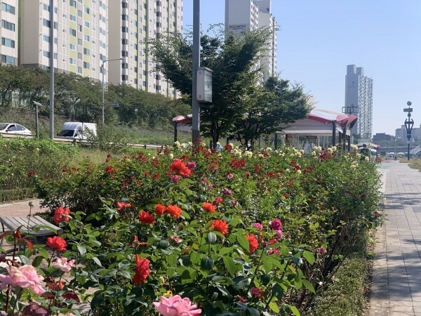 구는 선선해지는 날씨에 장미와 코스모스가 함께 피어나는 경관을 조성하고자 지난 8월, 24만여 주의 장미에 전지작업을 실시하고 1만㎡ 규모의 코스모스 파종작업을 일제히 마쳤다.
