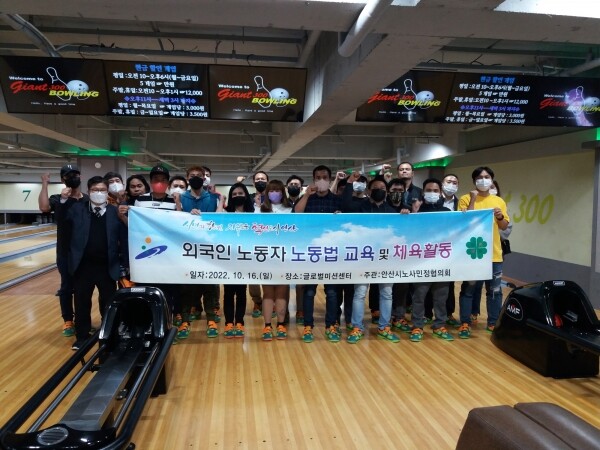 특히 주휴수당과 괴롭힘 방지법 등 외국인 노동자들이 관심을 갖는 분야에 대한 노무상담이 집중적으로 진행됐으며 교육 후에는 함께 볼링을 통해 단합과 힐링의 시간을 보냈다.